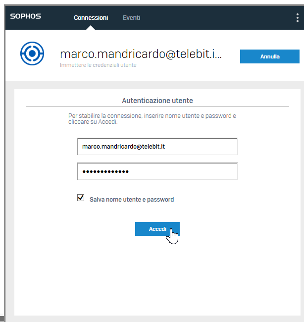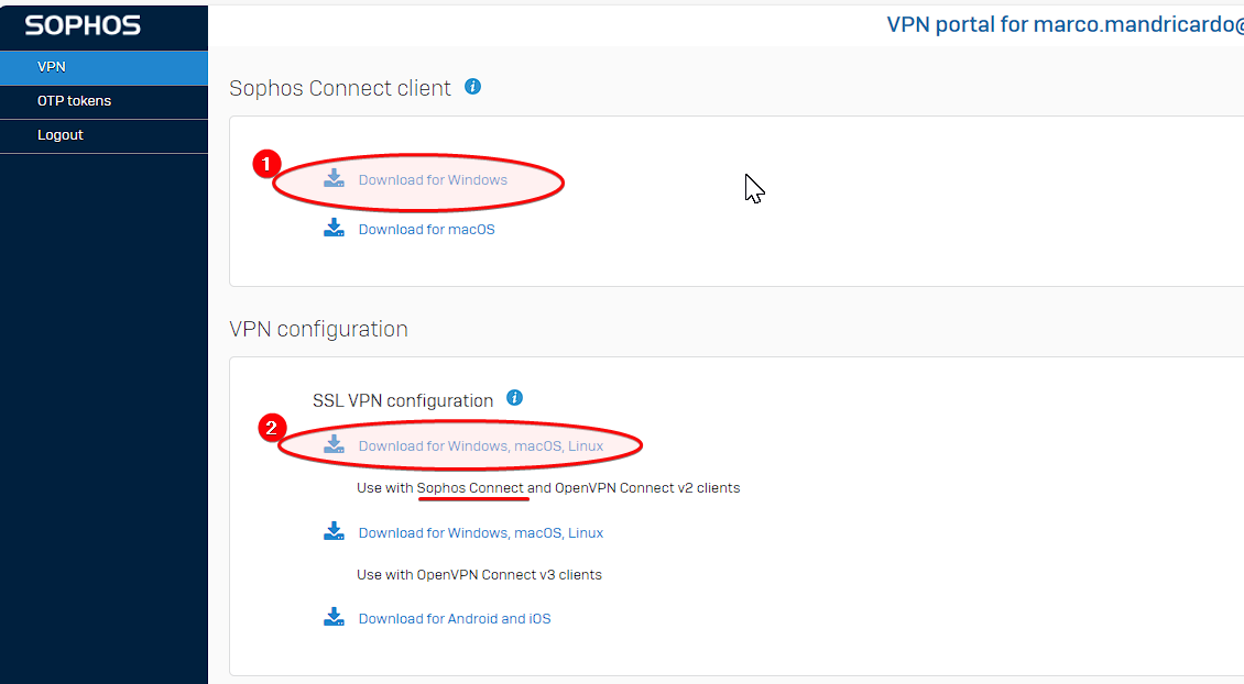 *NB: al login del VPN portal, se si usa l'email e si scarica il file di config, il login via sophos connect sarà via email (così avviene di default da un po di tempo per i nuovi utenti\PC)