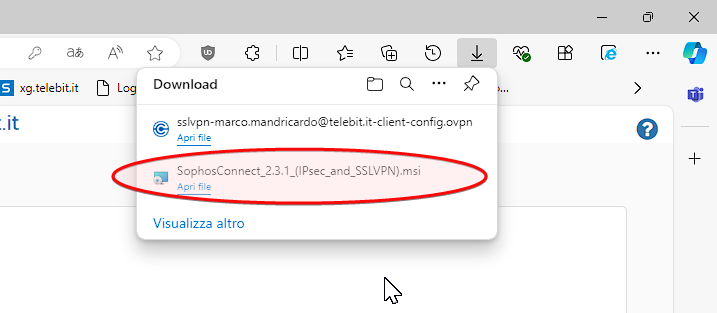 - Esegui il file di installazione del software "Sophos Connect" con estensione .msi direttamente dopo averlo scaricato nella tua cartella Download: