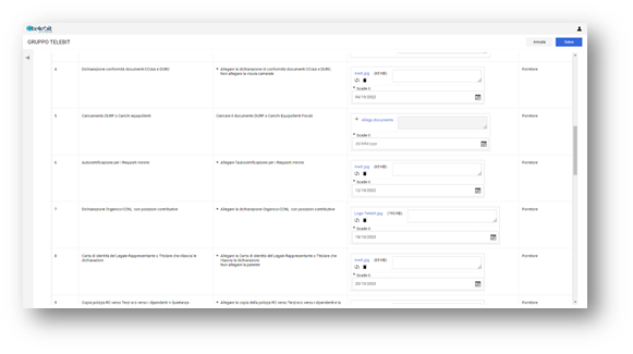 Si apriranno ora una serie di domande in base alla categoria (principalmente documenti da allegare e/o compilare con associata la data di scadenza). Completate le varie risposte premere “Salva".