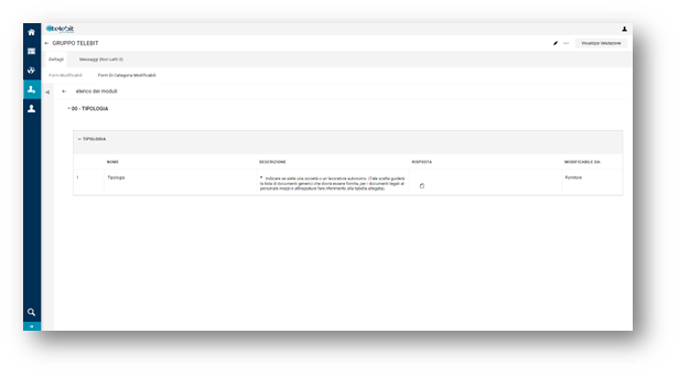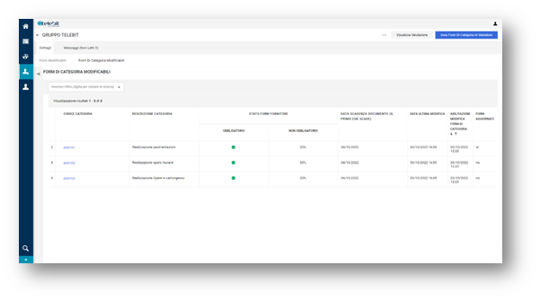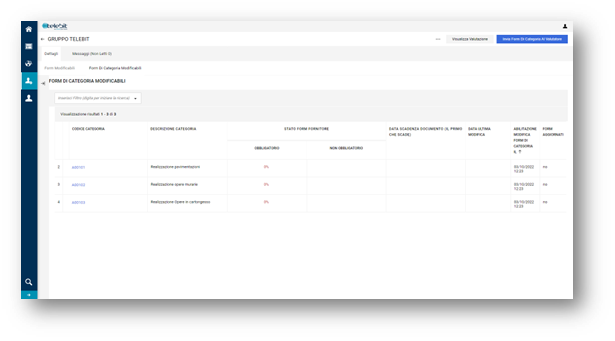 Si dovrà cliccare su FORM DI CATEGORIE MODIFICABILI e comparirà la schermata con tutte le categorie selezionate in precedenza.