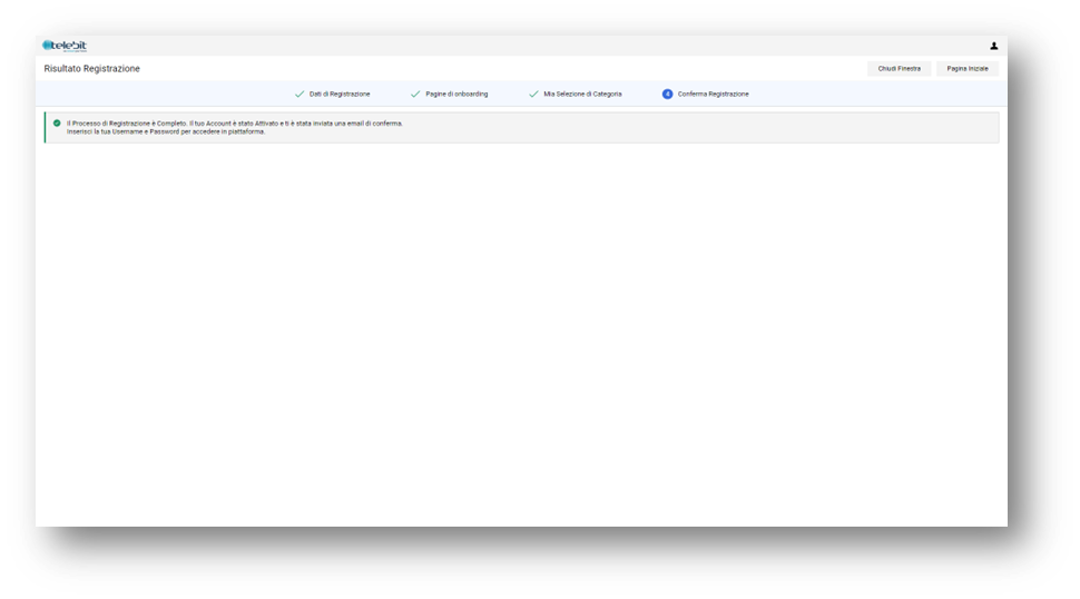 Se tutte le informazioni obbligatorie sono state inserite il processo sarà completato.