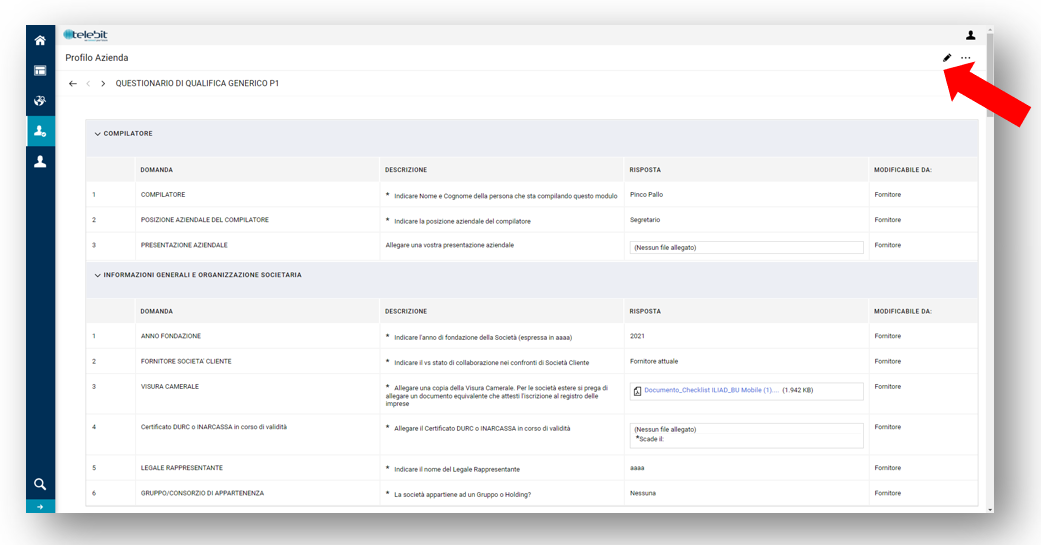 Dal menù laterale cliccare su “Mia azienda -> Profilo Azienda -> Dati di profilo”
