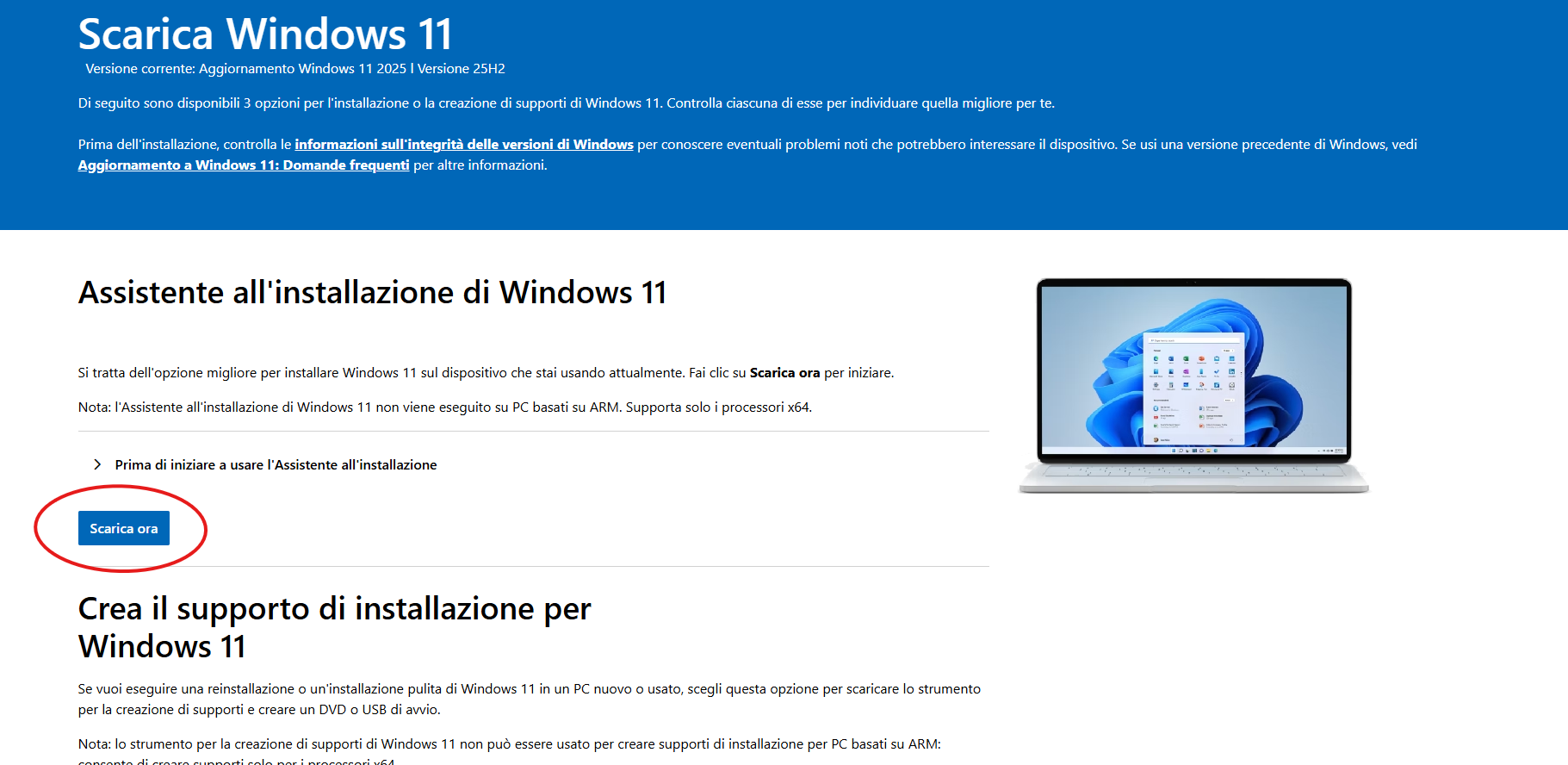 Apri il seguente link per installare l'assistente di installazione : Scarica Windows 11