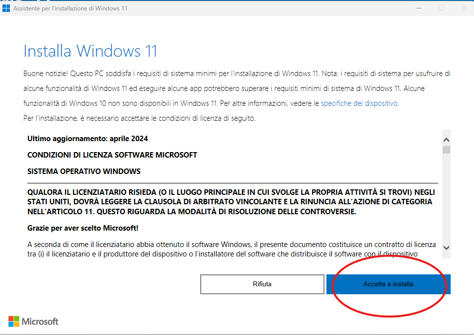 - Prosegui con i passaggi guidati cliccando su "Accetta e installa"